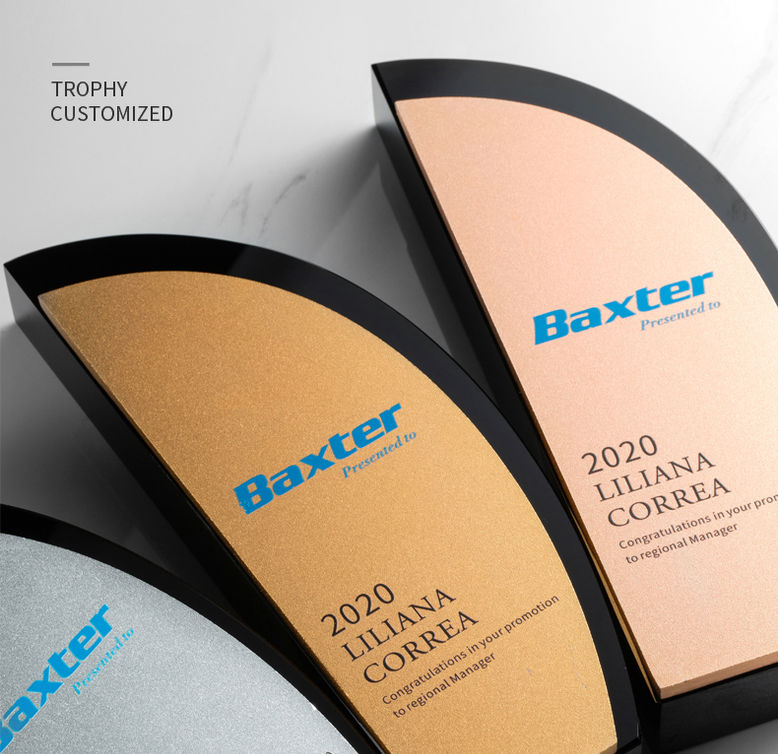 Este elegante trofeo en forma de vela está hecho de vidrio negro y metal, combinando materiales modernos y sofisticados. La superficie lisa del vidrio negro y la brillante estructura metálica se complementan perfectamente, creando un premio único e impresionante. Además, el trofeo es personalizable, lo que le permite ser un reconocimiento personalizado y significativo para el ganador